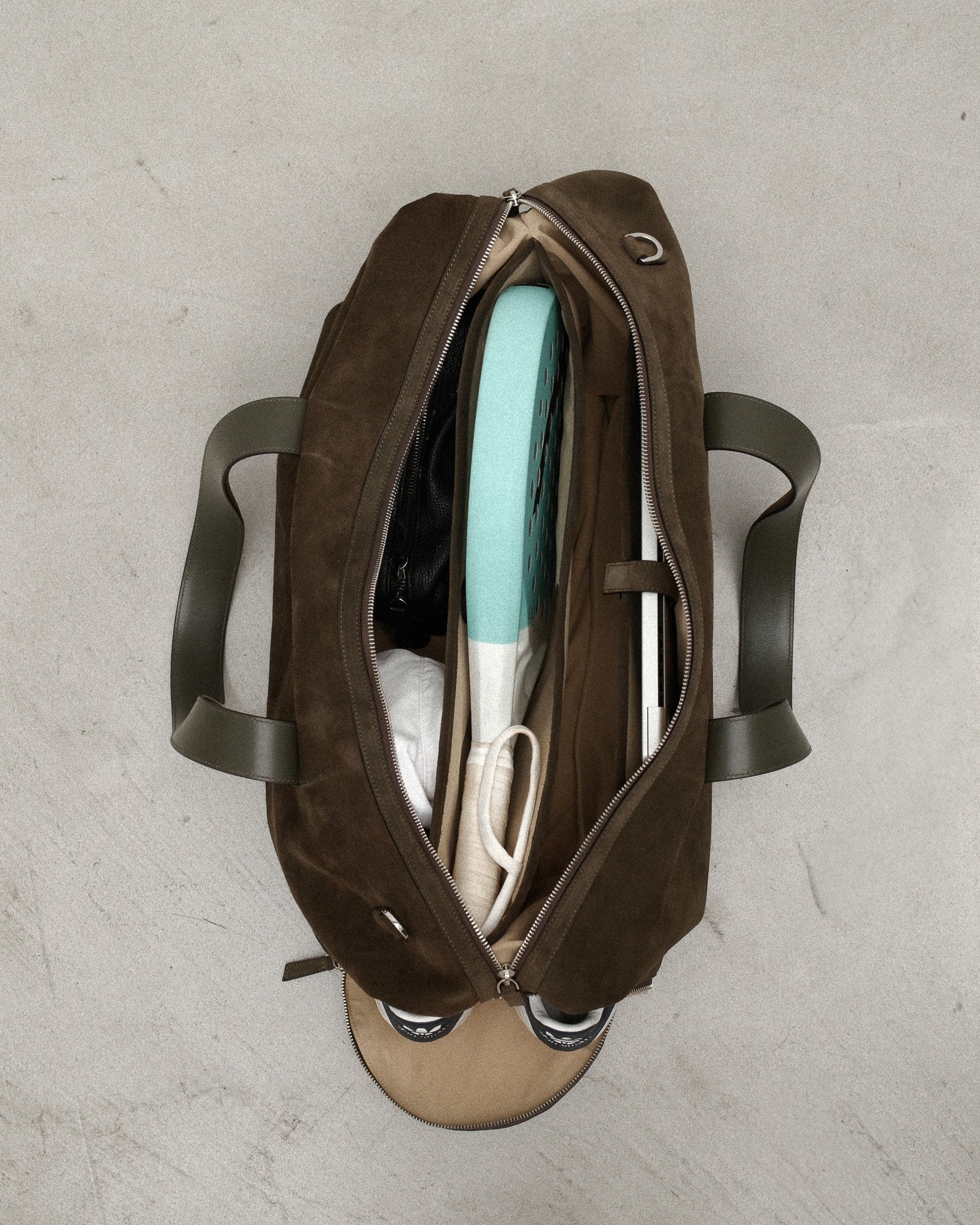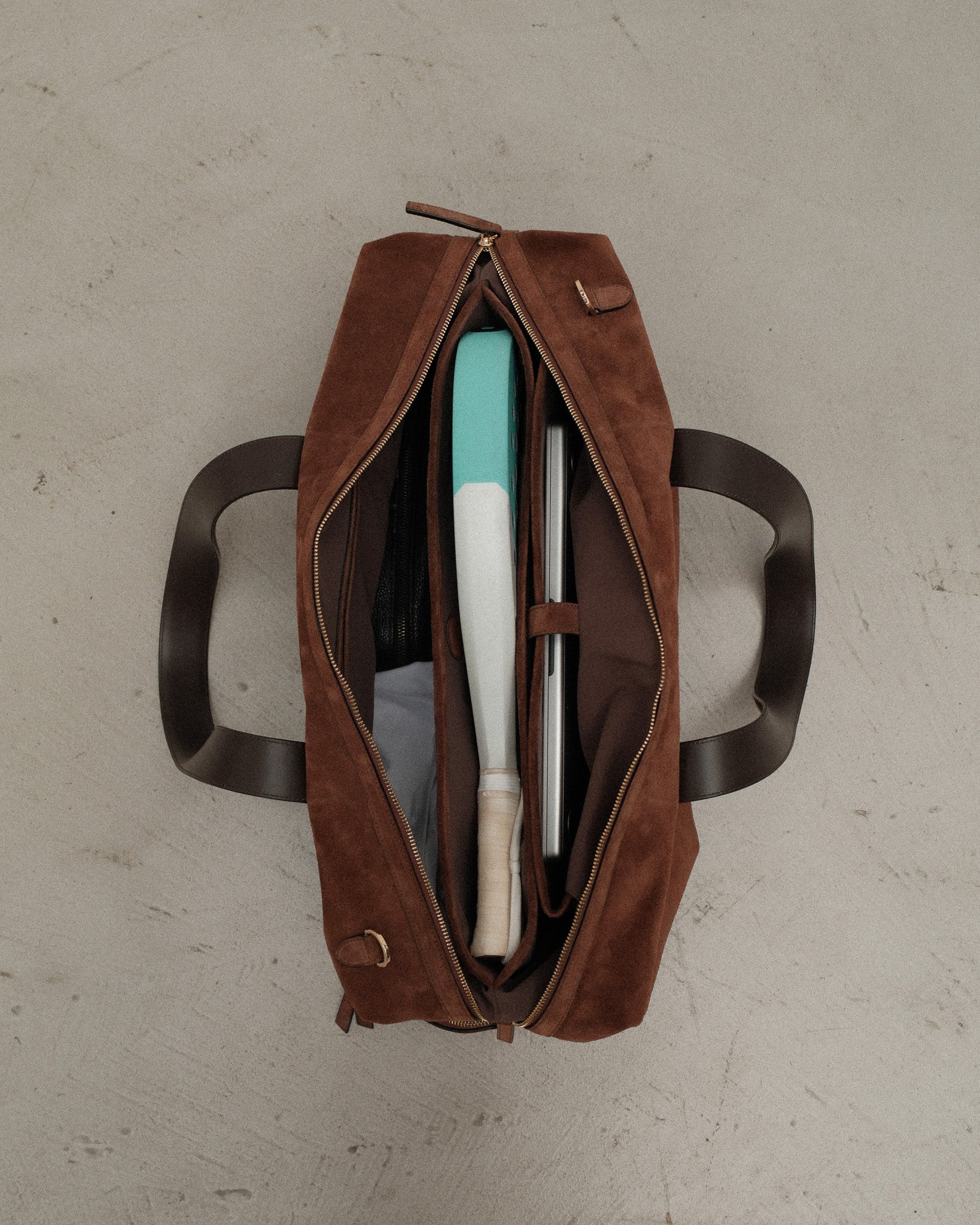 Designed for the everyday transition from work to sports. The 001 Brown Suede bag is the perfect complement to your office wear, and features functional details made for sports.